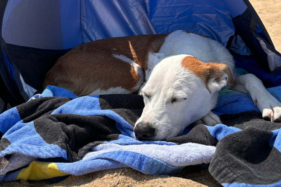 Pack plenty of waste bags, a lint roller for sandy fur, and a basic pet first-aid kit with items like bandage wraps, tweezers (for sand burrs), and any medications your dog needs. It’s also smart to bring vet records or a photo of them, just in case.
